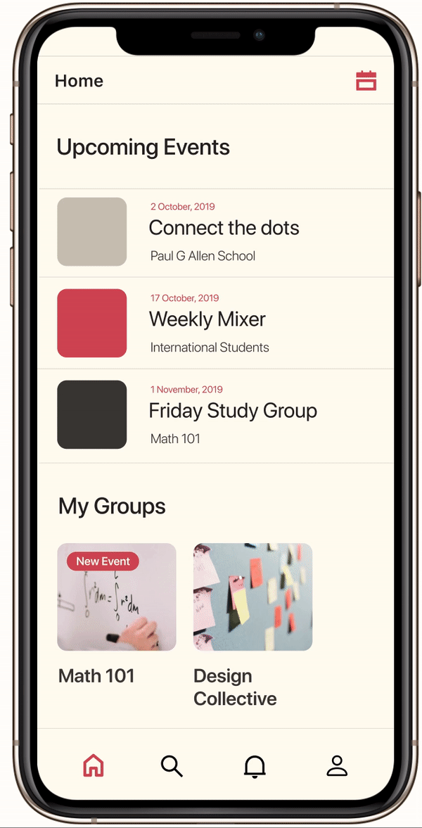 At every step we wanted to provide options and cues for the users to explore groups and events. Exploration is possible either through suggested content or through carefully curated categories.